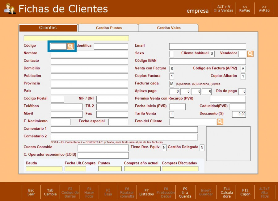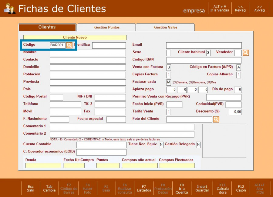 PASO 4: Si el código no existe, pulsa ESC para iniciar el alta del cliente.