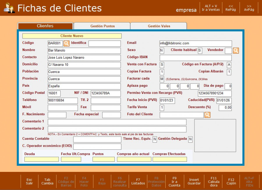 Hemos de rellenar los datos del cliente (Pulsa INTRO después de introducir cada dato):