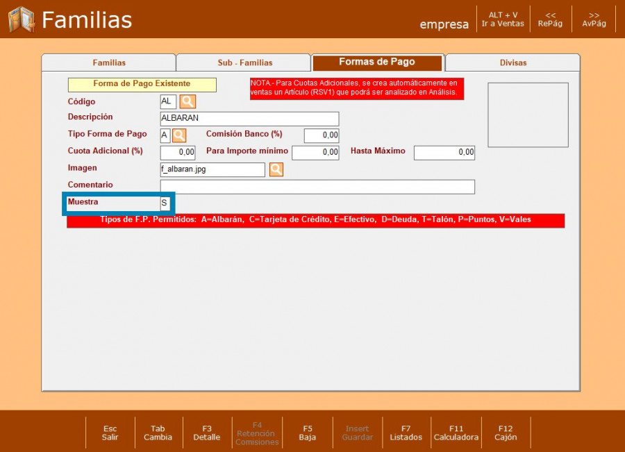 Para vender con albaranes, primero debemos revisar si la forma de pago está configurada correctamente como albarán. Para ello, seguimos estos pasos: