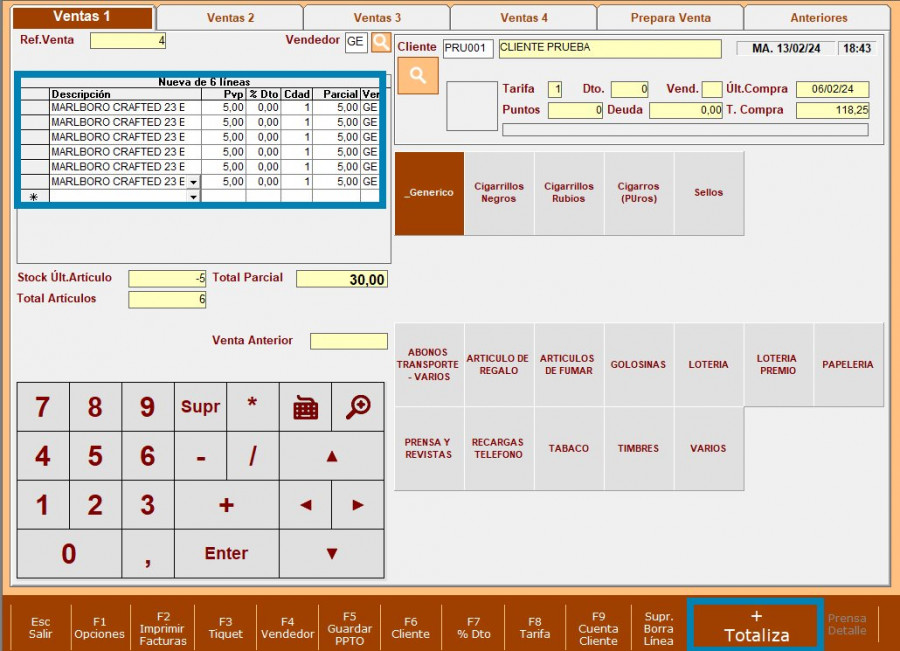PASO 3: Añadir los artículos que queremos vender y totalizamos la venta.
