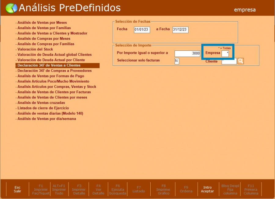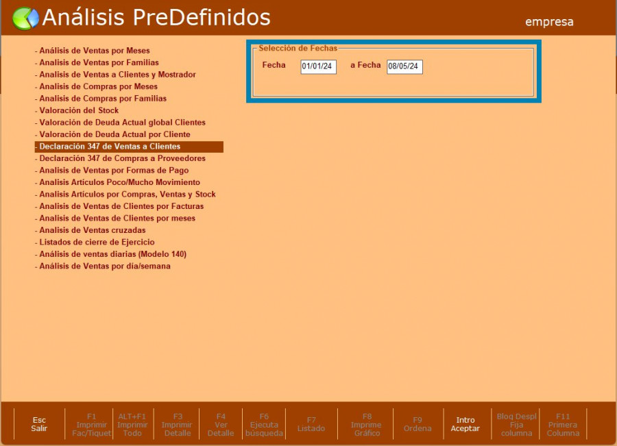 PASO 4: Ubícate en "Declaración 347 de ventas a clientes" y presiona "Intro".