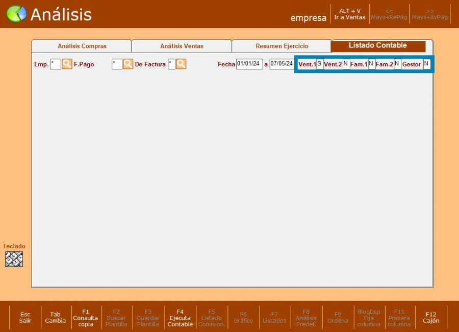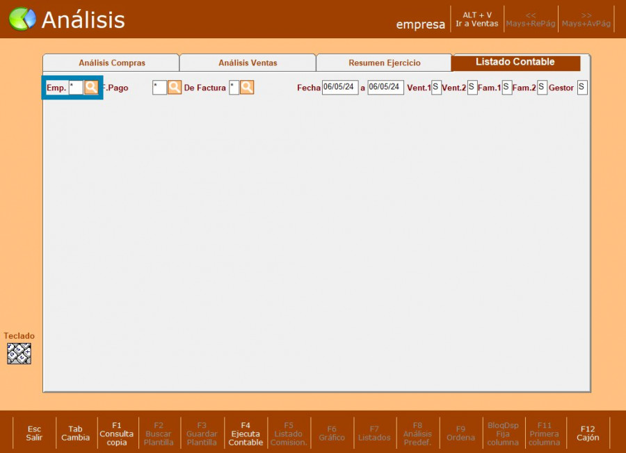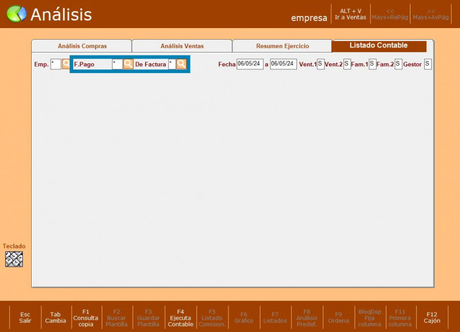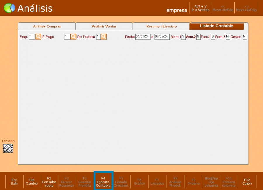 PASO 8: Pulsa "F4 Ejecuta Contable" para generar el listado.