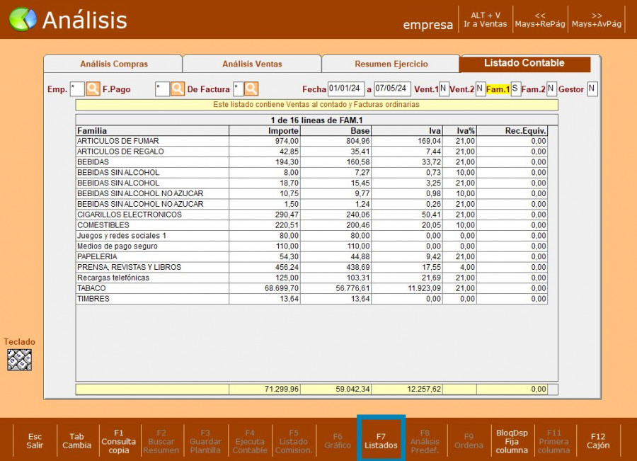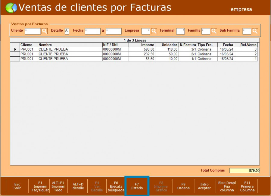 PASO 11: Finalmente, pulsa nuevamente "F7 Imprimir" para completar la selección e imprimir el listado.