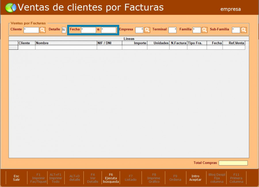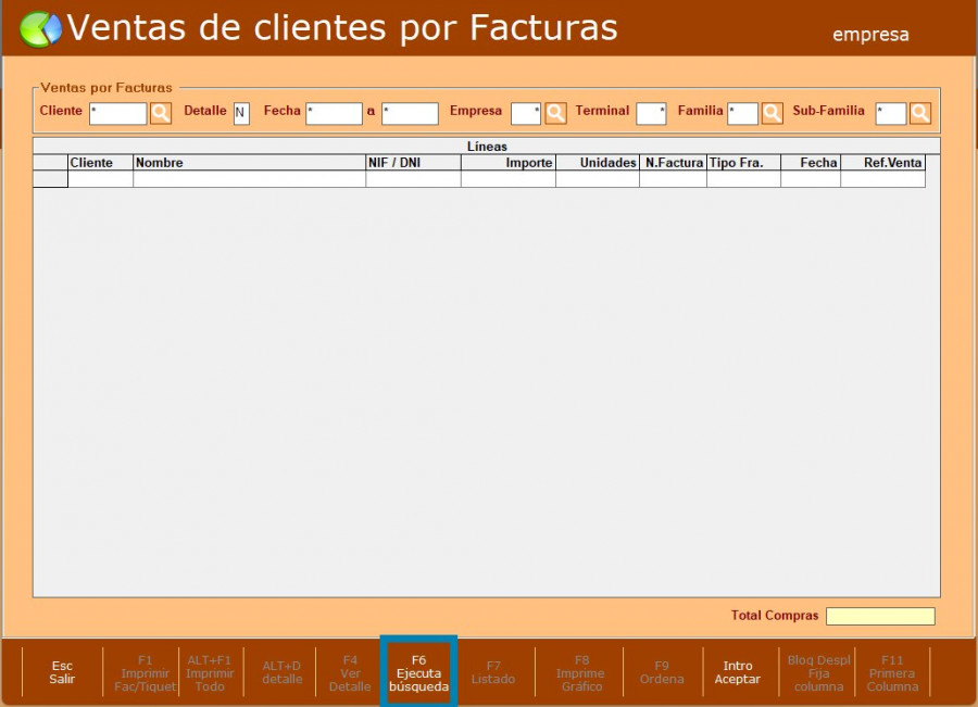 PASO 8: Pulsa la tecla F6 para ejecutar la búsqueda y generar el listado.