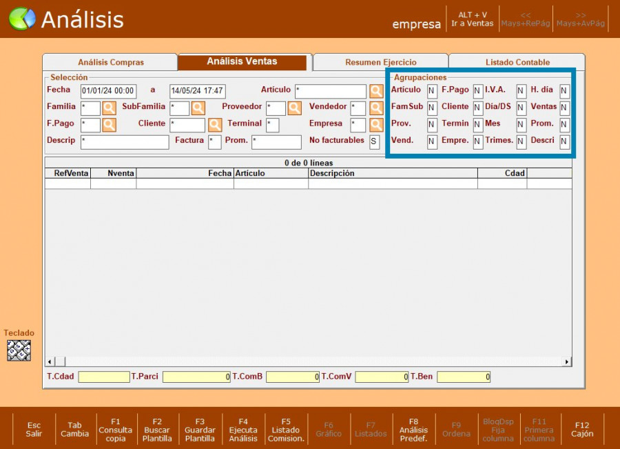- Número de Empresa: Permite ver las ventas asociadas de la empresa seleccionada.