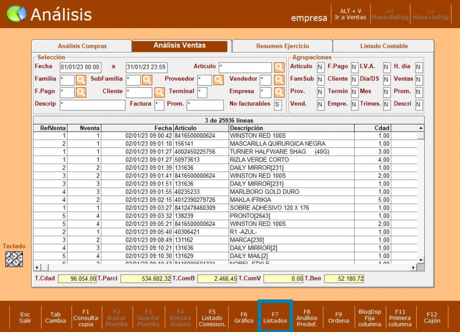 Siguiendo estos pasos, podrás generar un listado de análisis ventas en el programa Estancos Élite: