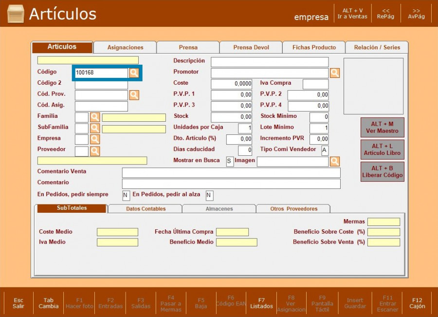 PASO 4: Una vez que se haya cargado el artículo, busca el apartado de "CODPROV".
