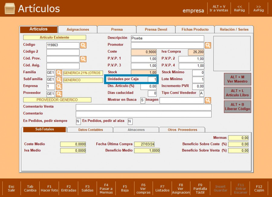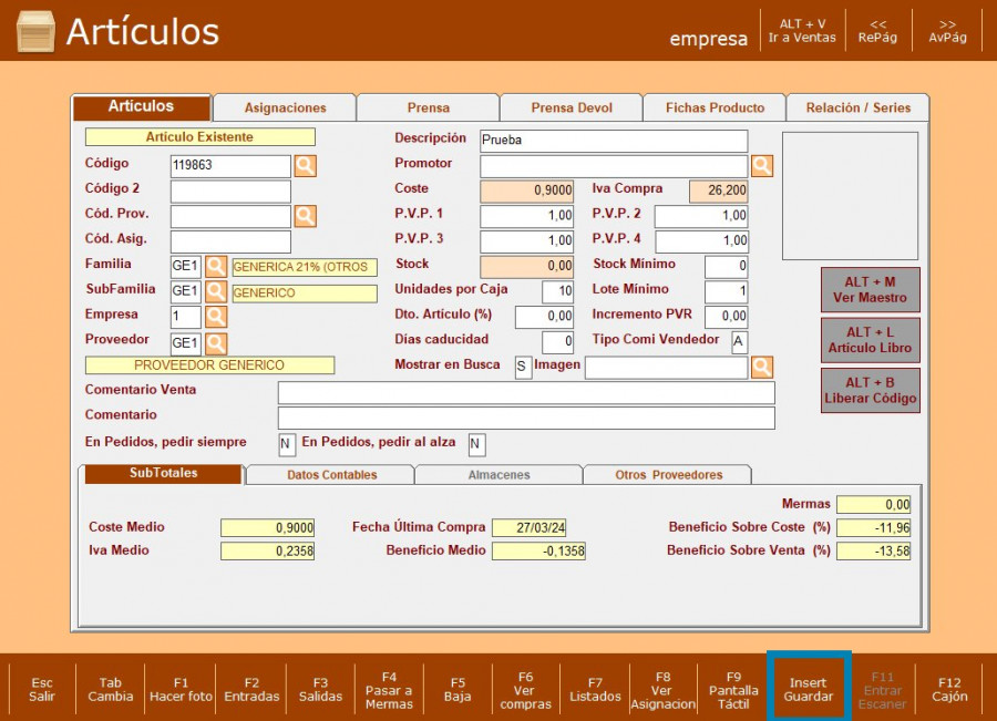 PASO 7: Guarda los cambios realizados en el artículo pulsando "Insert/Guardar".