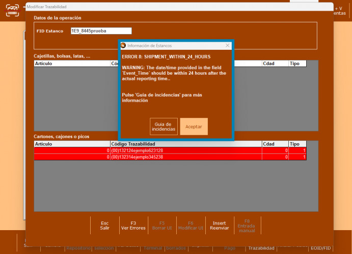 En caso de encontrarse con el error 8 (SIN_DETERMINAR), se recomienda ponerse en contacto con LK Bitronic para obtener ayuda en la resolución de esta incidencia muy poco frecuente.